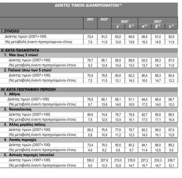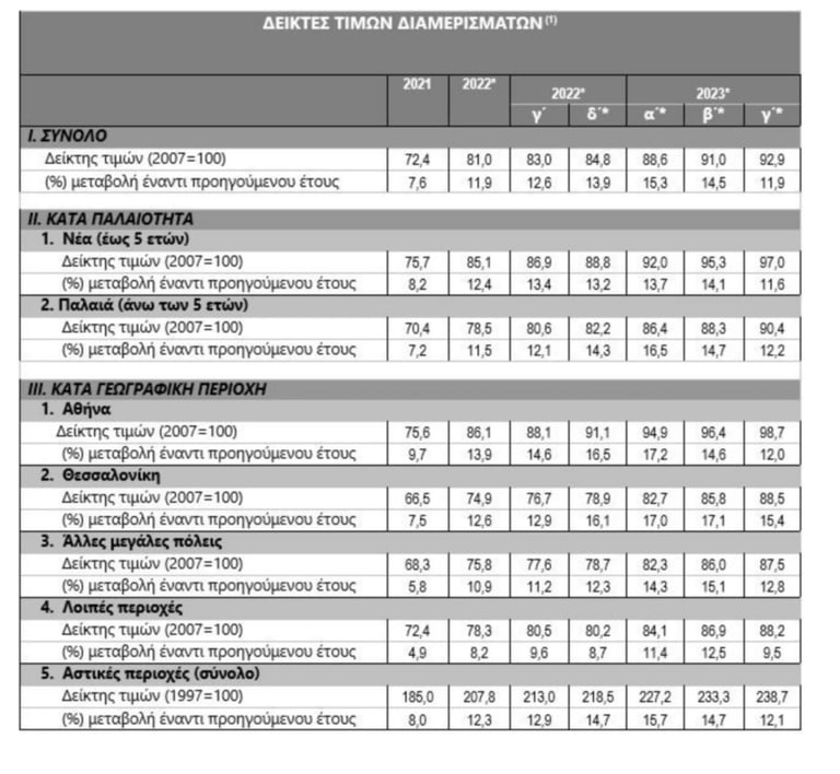 Αρα τι συμπεραίνουμε να δούμε για την Ελληνική κτηματαγορά όπου το 75% των αγορών γίνεται με ιδία κεφάλαια, το κόστος κατασκευής/ ανακαίνισης είναι στο υψηλότερο σημείο των τελευταίων 20 ετών. υπάρχει απουσία ακινήτων σε σχέση με τη υφιστάμενη ζήτηση ? Σύμφωνα με τη Τράπεζα της Ελλάδος (σχετικό άρθρο εδώ) έχουμε 12% αύξηση στις εμπορικές αξίες ακινήτων σε σχέση με το αντίστοιχο διάστημα του 2022 και όπως βλέπουμε στο παρακάτω πίνακα η πρωταθλήτρια είναι η Αττική…