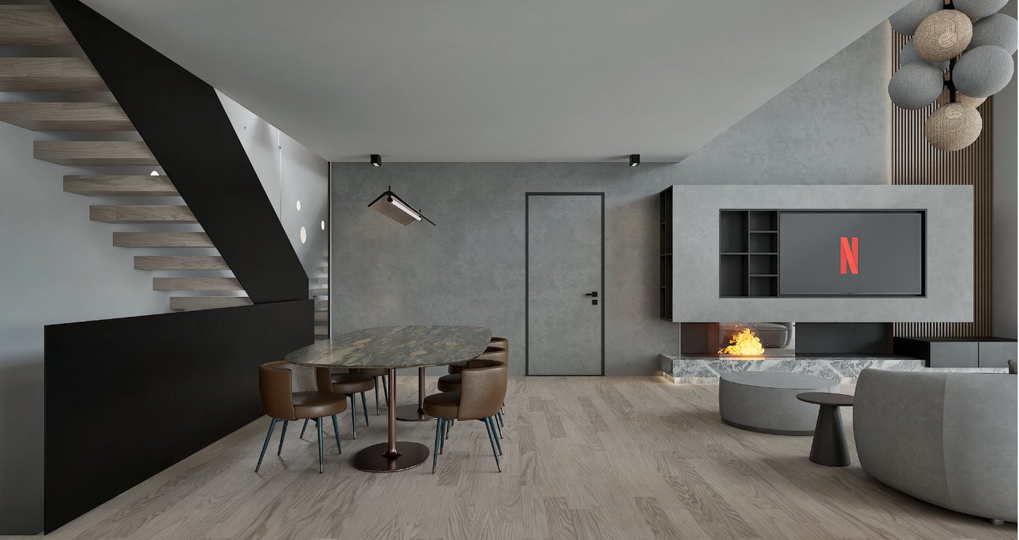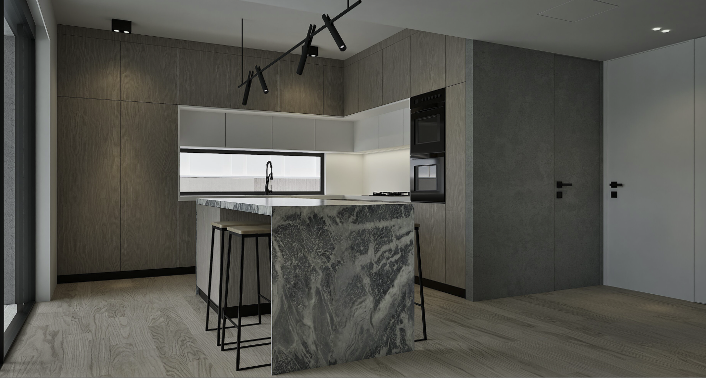 Ground floor-First floor with basement playroom and internal stairway. The basement consists of playroom, WC, kitchen and possibility of independent entrance. At the ground floor, the kitchen, dining room, living room, WC and one bedroom are located. At the first floor there are three bedrooms (1 master) and the bathroom.