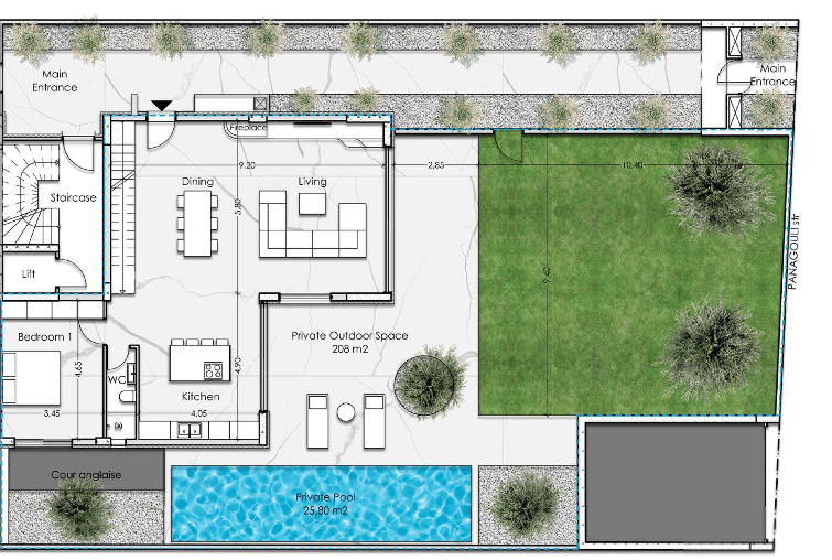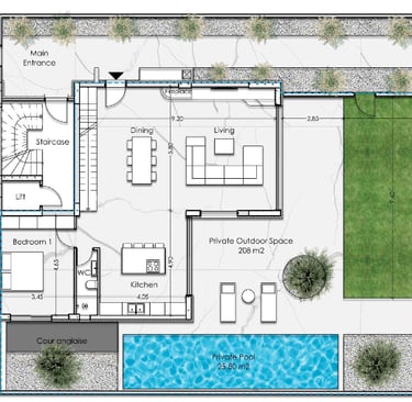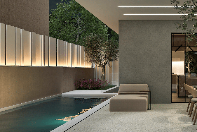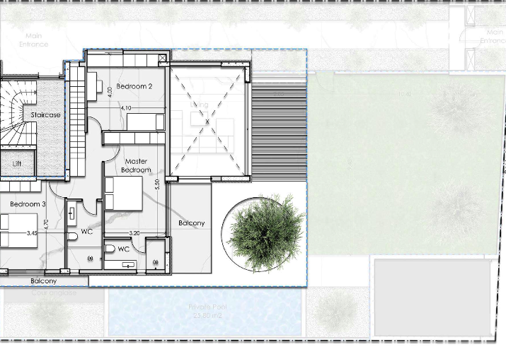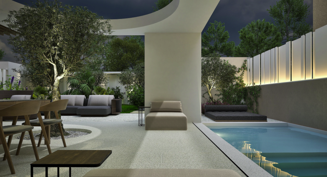 At the outside, there is a private garden with pool and there are also- two big -balconies.