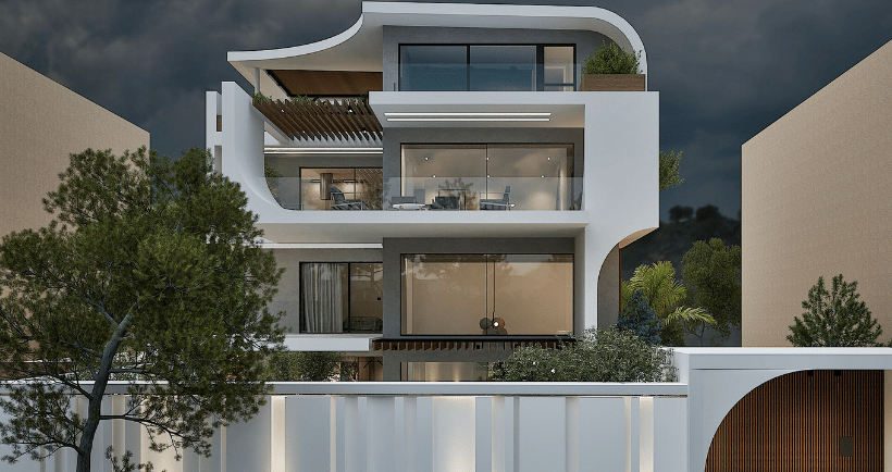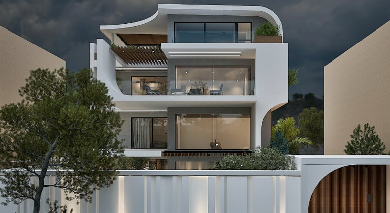 Προσπαθώντας λοιπόν να απαντήσω στη παραπάνω εξίσωση η βόλτα μου στη παραλία στο νότιο τμήμα της αττικής με οδήγησε στη βουλιαγμένη. Εκεί επί της οδού Αλ. Παναγούλη συναντάμε ένα συγκρότημα κατοικιών. Μου τράβηξε το ενδιαφέρον η μεζονέτα πρόσοψης 3 επιπέδων επιφάνειας κάτι λιγότερο από 260τμ, με ιδιόκτητο κήπο 200τμ με πισίνα.