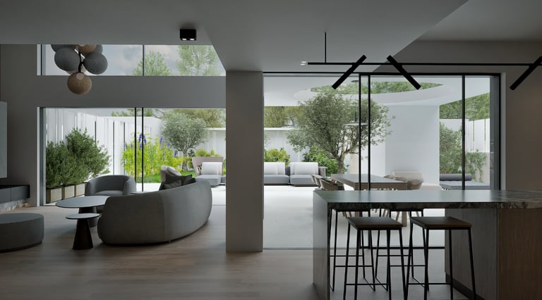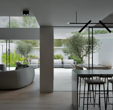 Αρχικά οφείλω να περιγράψω τα τεχνικά του στοιχεία, ως προς την αρχιτεκτονική της είναι (όπως φαίνεται και στις φωτογραφίες) μοντέρνα χωρίς ωστόσο να τρομάζει ή για να χρησιμοποιήσω έναν τεχνικό όρο «φωνάζει». Δένει όμορφα με το αστικό περιβάλλον και νιώθω ότι ο τίτλος διαχρονικά μοντέρνο στιλ είναι κατάλληλος. Το στοιχείο που εντυπωσιάζει είναι τα μεγάλα ανοίγματα (το καθιστικό στο ισόγειο έχει ύψος 5 μέτρα όλο με υαλοπίνακες) που παρέχει άπλετο φως σε όλα τα σημεία της οικίας. Όπως απαιτεί πλέον το 2025 είναι ενεργειακής κλάσης Α+ και ας δούμε πρακτικά τι σημαίνει αυτό:
