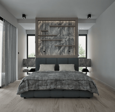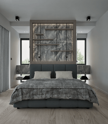 ένα master bed room με δικό του βεστιάριο και μπάνιο καθώς και προσωπική βεράντα
