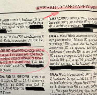 Αλλά ας πάμε σε εκείνο το μακρινό 2005 που ένας φίλος είχε δει ένα διαμέρισμα στα Άνω Πετράλωνα, μια περιοχή οικιστική που ο τουρισμός δεν την είχε αλλοιώσει τότε… αλλά ήταν πολύ κοντά στο Θησείο που πατροπαράδοτα ήταν και ακόμα είναι σημείο συνάντησης για καφέ ή φαγητό και τουριστικός προορισμός. Το διαμέρισμα ήταν νεόδμητο κάλυπτε όλο τον 3ο όροφο, 90τμ με 2 υπνοδωμάτια, τζάκι, αποθήκη, θέση στάθμευσης, με ζητούμενη 225.000 ευρώ δηλαδή 2.500/τμ.